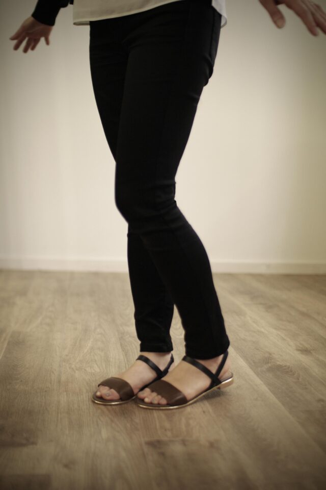 二つ目の改良点は、かかとのベルトが外れやすいということがあり、ベルトの根本を太くして、見えない部分ですが、補強芯を入れてベルトが落ちないようにしました。