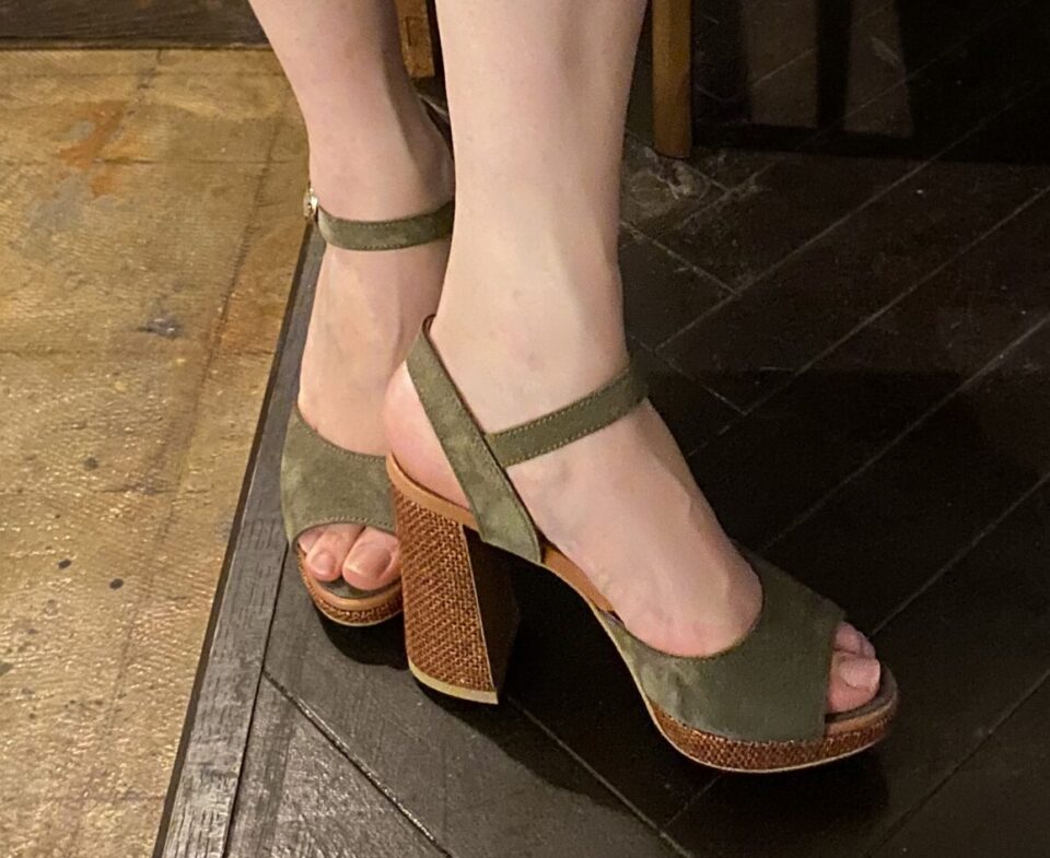 足首の華奢な方ですが、アンクルストラップでしっかり止まっています。
