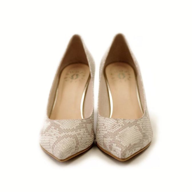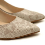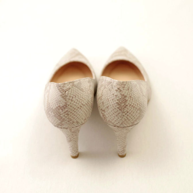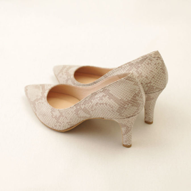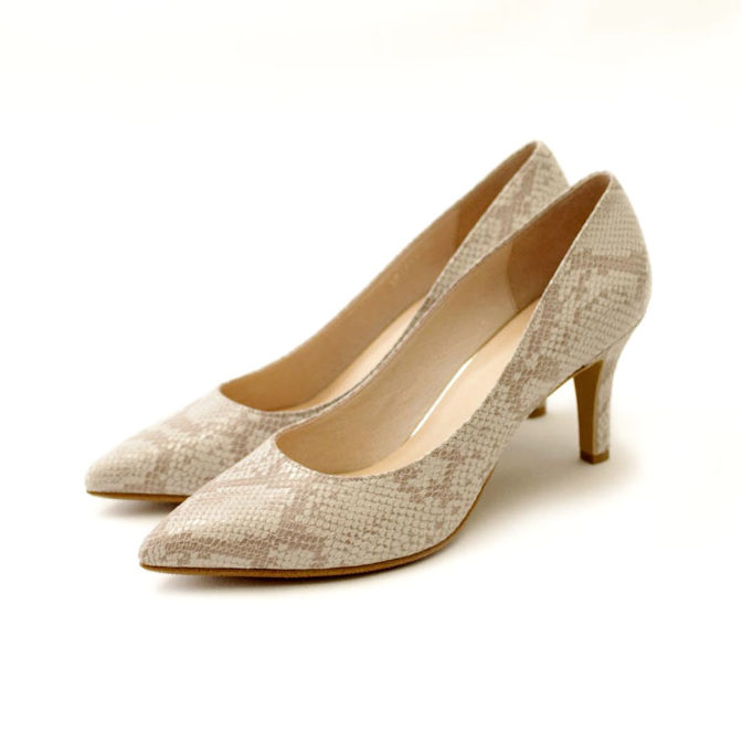 [ ご予約受付中 ] ベージュヘビ柄パンプス 75mmヒール ラウンドトウ プレーンパンプス