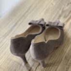 踵周りのフラワーカッティングが綺麗なリボン付きパンプスです。