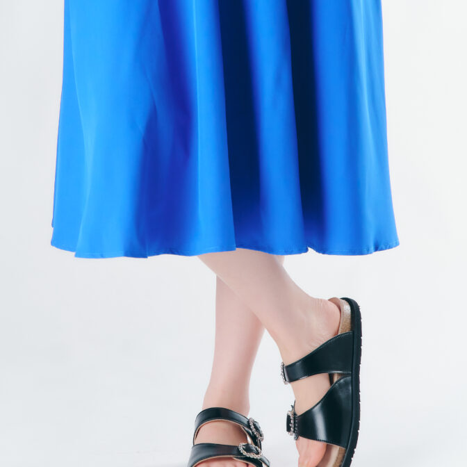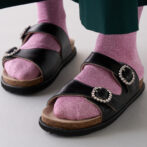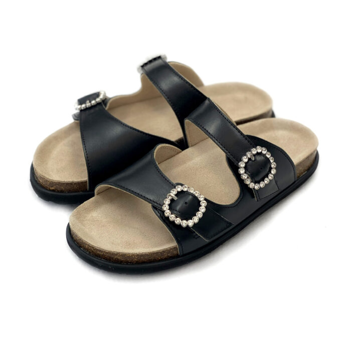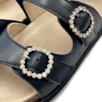 40mmの華やかなバックルは、ゴールドとシルバーの2色展開。上品な印象を与えながら、カジュアルなコーディネートに華を添えます。足の形にフィットする立体的なインソールは、柔らかいスポンジ素材を使用しており、長時間の使用でも快適です。
